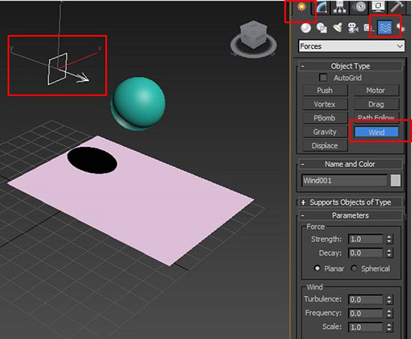 3.选中风力,然后在球体的左侧创建风力。