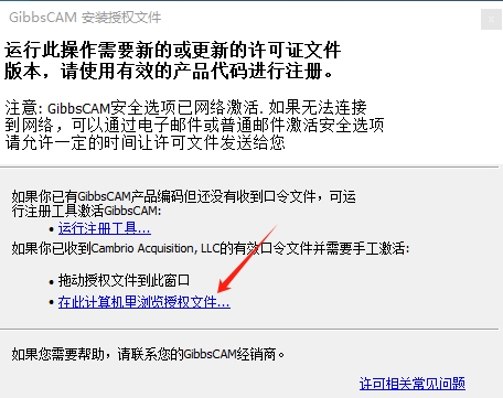 14、运行GibbsCAM 2025软件弹出界面,点击【在此计算机里浏览授权文件】。