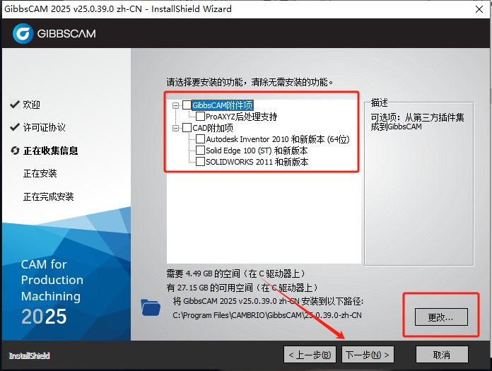 6、勾选需要的安装功能,更改安装路径,点击【下一步】。