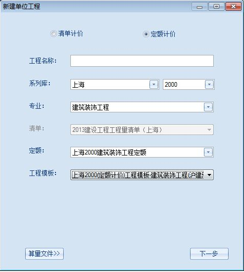 (2)第二步在弹出的新建单位工程对话框,输入工程如图