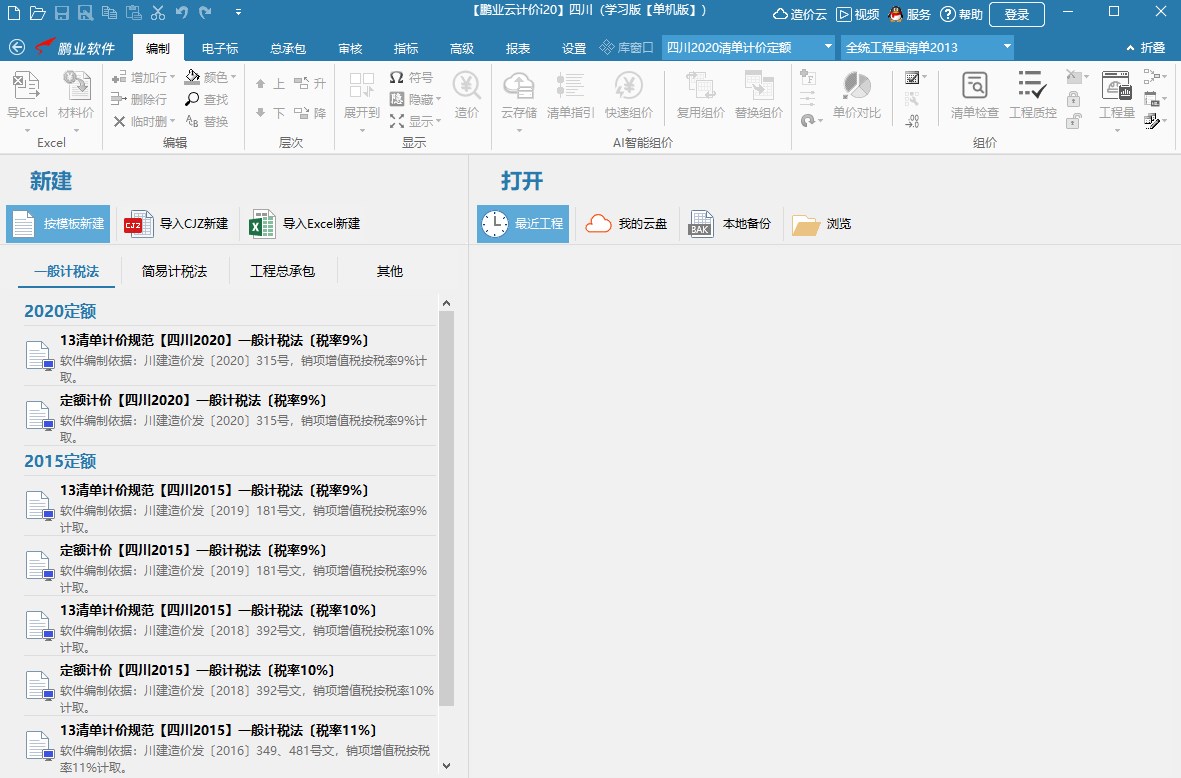 10、兼容清单计价模式和定额计价模式,满足不同工程量清单报价模式的需要,能够通过不同的工程模板实现不同的造价计价规则,同时满足企业自主报价的需要;