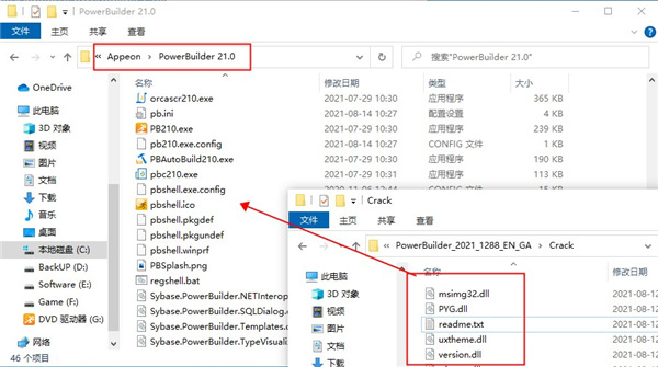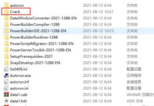 1、下载解压,得到appeon PowerBuilder 2021原程序和crack文件;