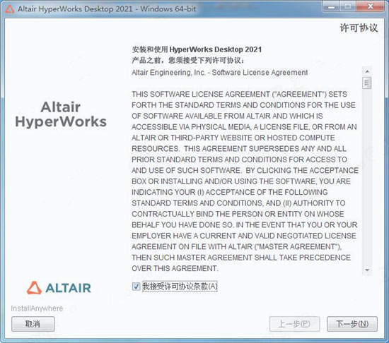 1、下载数据包后进行解压,得到altair hyperworks源程序以及_SolidSQUAD_补丁文件夹;2、分别安装Altair HyperWorks DesktopWin64、Mechanical Solvers Win64、CFD Solvers Win64!双击hwDesktop2021_win64.exe运行安装, 勾选我接受许可协议条款