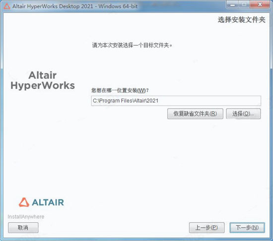 3、选择软件安装路径,默认路径为“C:\Program Files\Altair\2021”