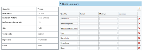该快速汇总表可在原地进行编辑。快速浏览该论文可以发现天线具有如图4所示的属性。请注意,这些字段为自由格式,因此可以输入任何已知信息。