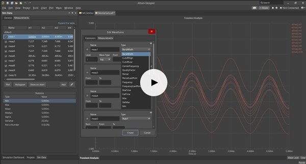 软件中的 SPICE 仿真工具现在在一个易于阅读的直方图显示中包括 Monte Carlo 分析以及从测量值生成的点对点图。