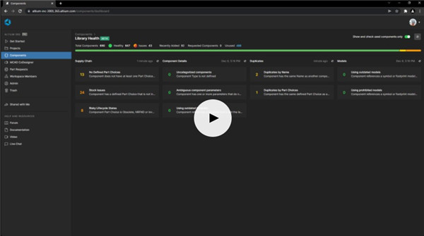 通过标记重复条目、过时部件、未使用数据和其他关键问题,组件运行状况监视器可帮助您保持库的最新状态和有用性。一个维护良好的组件库可以在这些供应问题开始之前缓解它们。Altium 365 Component Health Monitor 提供了一种简单的方法来深入了解您的组件。