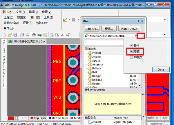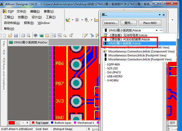 5、然后在选择库的选择栏中就可以找到PCB封装库了,完成以上设置后,就能调出PCB library选项。