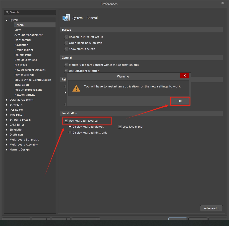 18、勾选【Use localized resources】,弹出对话框,点击OK。