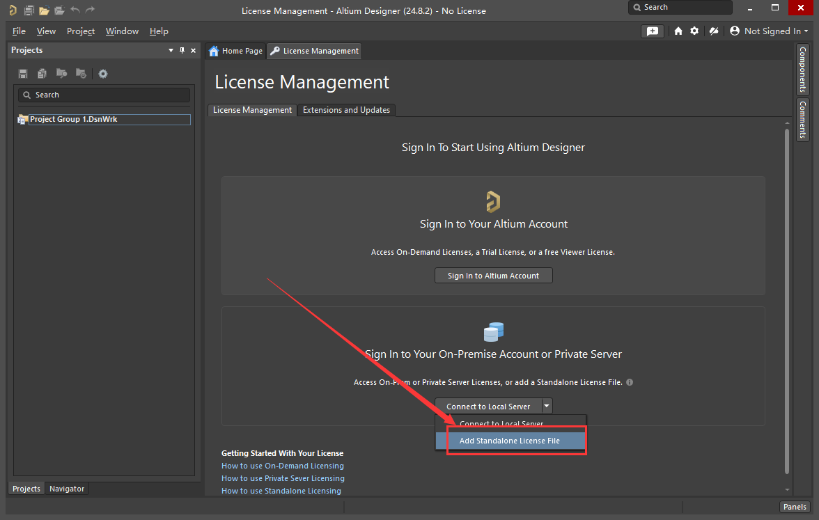 14、下拉选择【Add Standalone License File】。