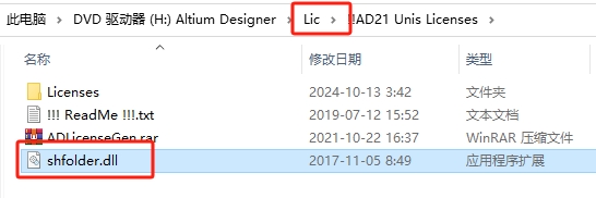 11、打开Lic文件夹,选择shfolder.dll激活文件复制到刚才打开的软件安装目录位置下。