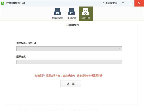 选择要还原的U盘直接点击‘U盘空间还原’按钮即可。
