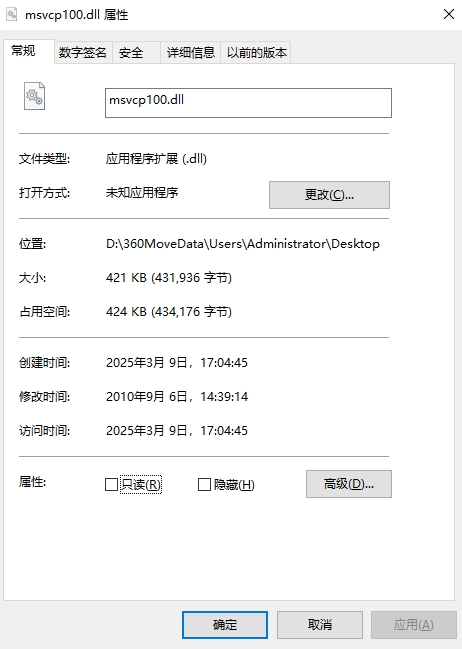 msvcp100.dll是存放在windows系统下的一个非常重要的dll文件。DLL英文全称Dynamic Link Library,中文意思是:动态链接库。DLL是一个作为共享函数库的可执行文件,它使进程可以调用不属于本身可执行代码中的函数。函数的可执行代码位于一个独立的动态链接库文件中,这样可以节省内存和磁盘的存储空间,同时使程序更易于升级对于系统的稳定性至关重要,缺少它可能会造成部分软件或游戏无法正常运行。缺少msvcp100.dll文件,当你运行软件的时候,会突然给你来个系统错误,会出现各样式的弹窗错误,这样的话你就得去下载安装一个msvcp100.dll文件。出现这个原因的问题有很多,不过,其中很大一部分都来源于下载了某些文件带有木马、病毒等。当电脑提示“计算机中丢失msvcp100.dll”或“没有找到msvcp100.dll”等类似错误信息,赶紧来本站下载该文件,本站提供msvcp100.dll文件,使用它可以帮助用户解决上述问题。