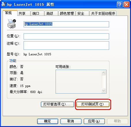 1.断开打印机与电脑端连接的数据线,重新启动电脑和打印机。按住打印机面板上的执行键,打印打印机的脱机测试页,确保打印机可以正常工作;