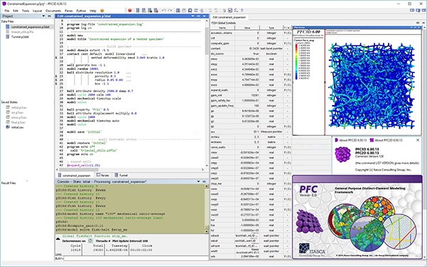 20、内嵌强大的功能函数库FishTank,预定义大量常规、特色功能,如试样/地质体复杂模型创建、颗粒体解译度优化、虚拟实验室技术、地应力赋存环境建立、工程材料强度的时间效应研究等