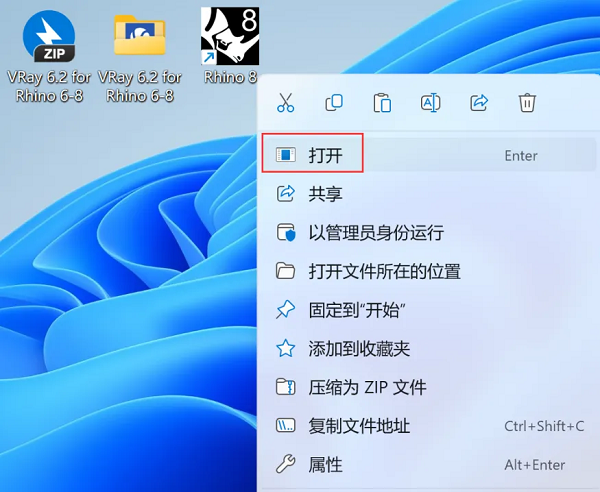 16、回到桌面,右键桌面上的【Rhino 8软件图标】,点击【打开】。