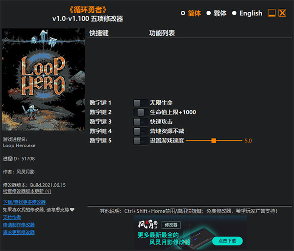 循环英雄五项修改器使用说明