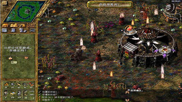 也是非常耗时的一关,基础工具极少,建议发展方式为:先造工具,再发展基础产业,建筑建完后造5套雕像把攻击力给提上去,60+个3级100攻击力弓手就可以灭了敌人了,消灭主力后就可以F12加速把中间那个墓地给挖干净,2个小时就可以赢了(要挖的范围大些才会判定为全部清洁干净了,不用消灭黑暗部落,,悲催我把中间挖干净了还没赢我以为要消灭之,就不停的F12,后来发现只要中间墓地挖的大一些就可以了)-259分钟胜利