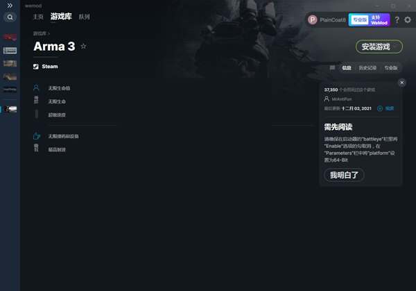 玩《武装突袭3》这种硬核军事游戏,有时候真的挺折磨人的,毕竟真实战场容错率太低了,但有了这个修改器,体验就完全不一样了。它简直就是个全能小助手,操作特别傻瓜式,下载解压后,先开修改器再进游戏,然后按几个简单的快捷键就能开启各种逆天功能。我个人最喜欢的是无限生命和无限弹药,再也不用担心在任务里突然被冷枪放倒,或者打着打着没子弹的尴尬情况了。超级速度和射速也挺有意思,能让你在战场上横冲直撞,体验一把超级士兵的感觉。不过话说回来,修改器虽然能降低难度,但偶尔用用调剂一下还行,毕竟原汁原味的战术配合和生存挑战才是这游戏的精髓所在,大家还是得把握好度,别让外挂毁了游戏本身的乐趣。 使用说明 1、首先下载修改器并进行解压 2、运行修改器 3、运行游戏 4、使用热键修改游戏 热键说明 F1 > 无限生命 F2 > 无限体力 F3 > 超级速度 F4 > 无限弹药 - 手雷 F5 > 超级射速