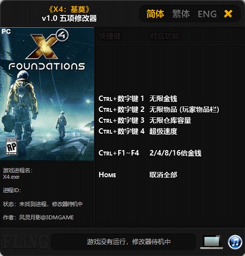 Ctrl+F1~F4 - 2/4/8/16倍金钱