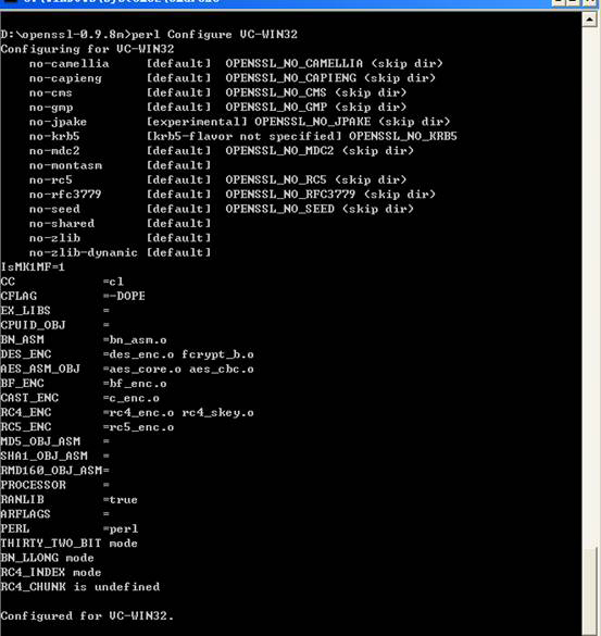如果编译成功,最后的输出都在out32dll目录下:包括可执行文件、两个dll和两个lib文件: libeay32.dll, libeay32.lib, ssleay32.dll, ssleay32.lib ;把他们放到PATH环境变量对应的一个目录里就可以了。