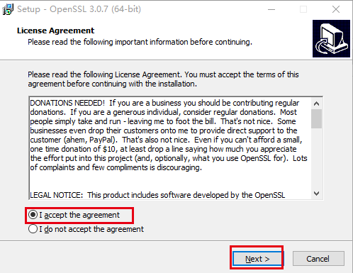 2、阅读安装许可协议,选择I accept the agreement我同意,点击next下一步