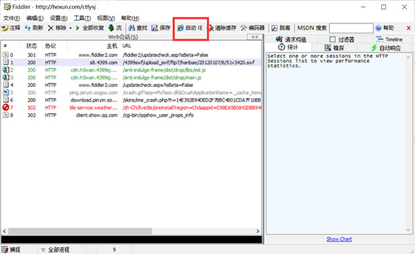 3、如果软件直接卡死也没关系,只要fiddler还在就可以了,点击启动IE也可以正常玩游戏哦.必须是IE浏览器;