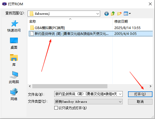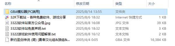 1、解压后,得到GBA模拟器,和新约圣剑传说游戏文件;