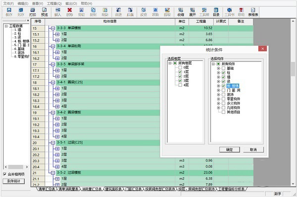 条件统计功能:支持统计任意楼层任意构件的工程量,可以实现实物量的短周期三算对比,这对于控制“飞单”这一利润漏洞、实现精细化管理起到非常大的作用。