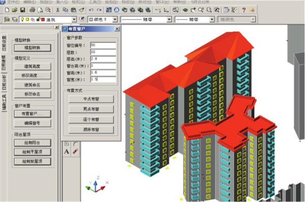 功能:异型窗轮廓绘制,按实际形状建模,可以设定异型窗对本栋建筑窗户是否遮挡影响,分为按层布置和通高布置;