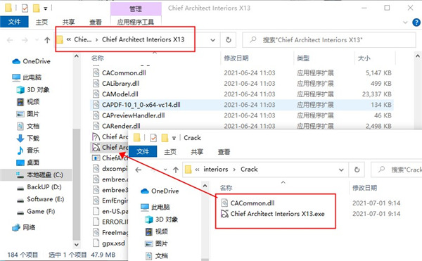 5、打开Crack文件夹,复制文件“Chief Architect Interiors X13.exe”到软件安装目录下替换原文件即可