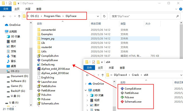 1、在本站下载解压,后得到crack文件和DipTrace原程序;