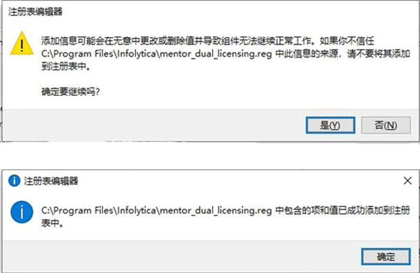 8、运行“Mentor_Dual_licensing.reg”并确认将信息添加到Windows注册表;重启软件即可。