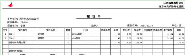 市场价格经常变化,当您更改原材料单价或加工单价以及外购件单价后产品报价单会马上按新价格计算。每 当您做完一批零件的工艺后,是否想马上知道这批零件的总工时、材料费、外购件费用、加工费、热处理费以及成本和利润是多少?如果是手工统计是非常繁琐和费力的,用本软件中的“产品报价”功能立刻得到答案,而且还会自动生成按车、铣、刨等工种汇总工时,使各工种的工作量一目了然,为科学安排生产提供有力依据。