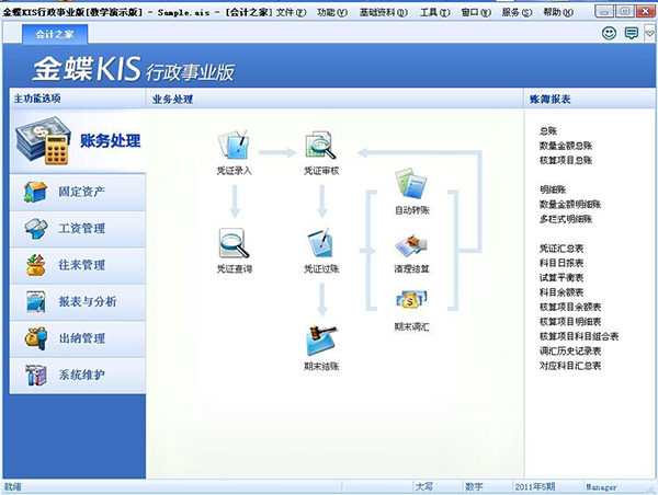 集中、简便的初始化管理; 提供凭证录入界面,支持凭证制作; 提供从凭证录入、凭证查询、凭证审核、凭证检查、凭证过账的凭证处理流程; 提供从自动转账、清理结算到期末调汇、期末结账的期末处理功能; 支持多角度的账务核算包括数量金额总账、核算项目总账、多栏式明细账等。