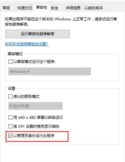 3. 如果需要使用普通管理员用户登录操作系统使用金蝶软件,请选择桌面金蝶图标,鼠标右键,属性,兼容性,勾选“以管理员身份运行此程序”,确定,打开软件,选“是”;