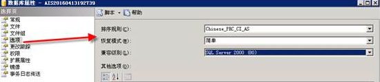 4、安装SQL Server 时,数据库排序规则是Chinese_PRC_CI_AS。在安装SQL Server 2005及以上版本时,兼容级别建议选择80即SQL Server 2000。参考数据库属性示例: