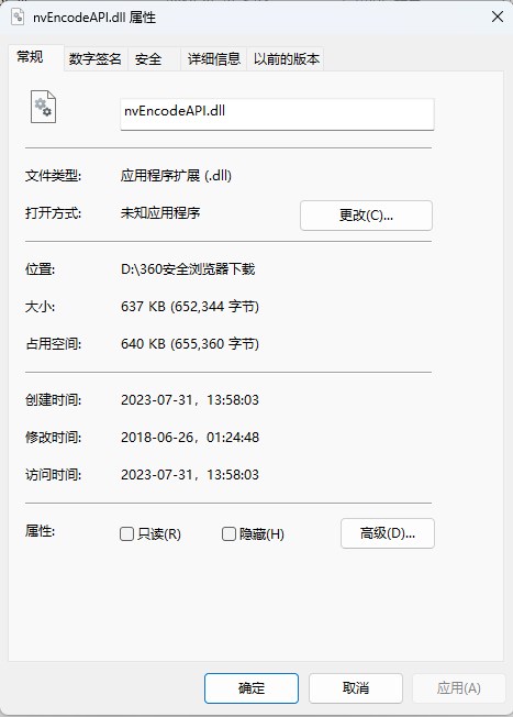 一、如果在运行某软件或编译程序时提示缺少、找不到nvEncodeAPI.dll等类似提示,您可将从本站下载来的nvEncodeAPI.dll拷贝到指定目录即可(一般是system系统目录或放到软件同级目录里面),或者重新添加文件引用。