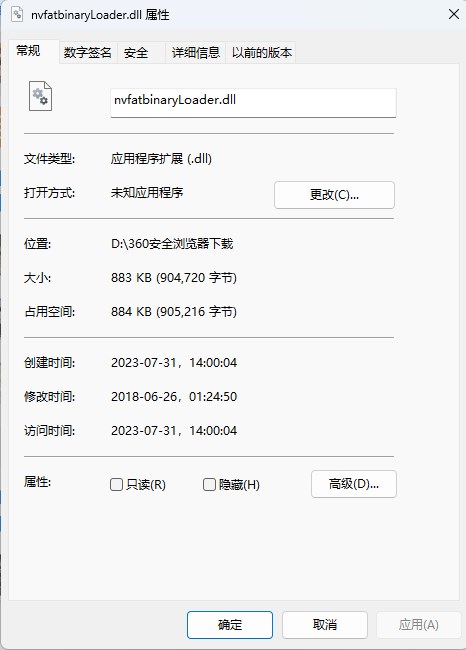 3、Windows XP/WIN7/win10系统(64位系统对应64位dll文件,32位系统对应32位dll文件),将nvfatbinaryLoader.dll复制到C:\Windows\System32目录下。