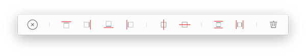 点击前四个按钮均为单线操作,可以在你选择图层的上、下、右四个方向形成参考线。这个功能的话不算特别,因为直接拖拽出来也不复杂。但是如果我是要在一个元素的中间打上一跳参考线,直接拖拽可不是一个好的决定,因为这个时候并没有边缘自动贴合的功能。所以此时手动拖拽不一定会精准,总会差那么一两个像素。而在插件里你只需要点击竖直中间参考线和水平中间参考线的按钮即可实现你要的效果。