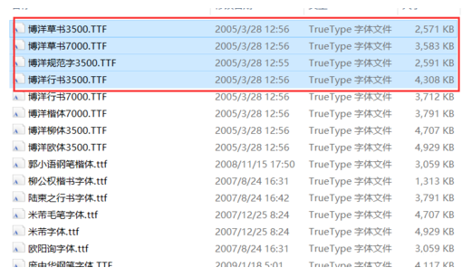 4、字体安装成功,图中就是安装的字体文件