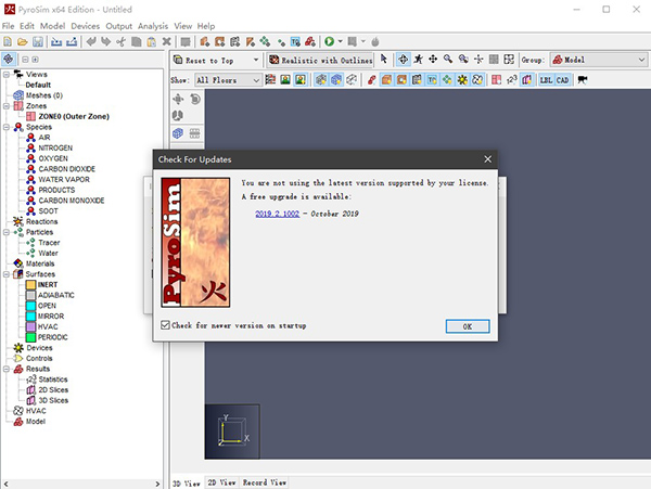 添加了标签,以在“检查更新”窗口中显示PyroSim的当前版本。