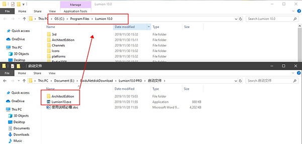 8、先不要运行软件,复制Lumion 10.exe 和ArchitectEdition文件夹到软件安装目录下