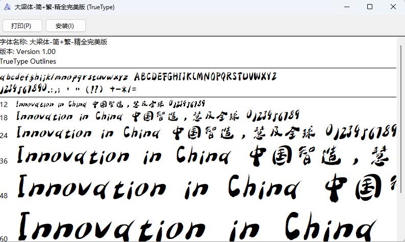 大梁体简繁精全完美版