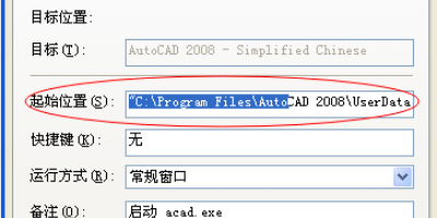 2、找到CAD安装目录,鼠标移到CAD快捷方式,右键,属性鼠标,通过起始位置,可以看到CAD安装目录