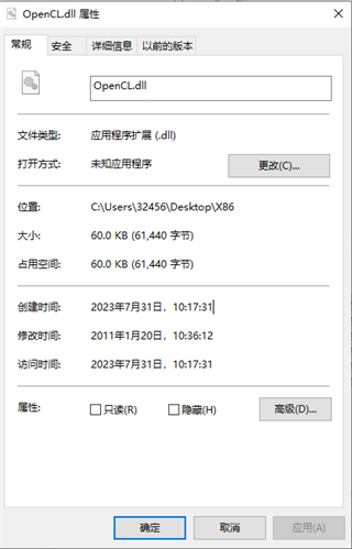 一、下载本站提供的数据包,然后解压得到OpenCL.dll文件,注意有有两个版本,32位和64位。