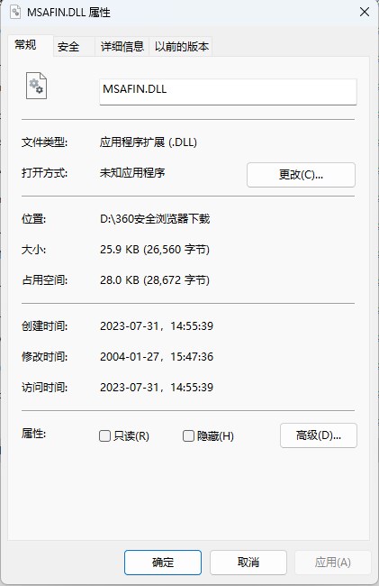 一、下载本站提供的数据包,然后解压得到Msafin.Dll文件