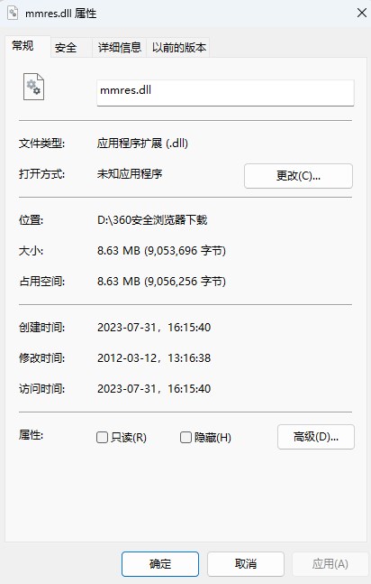 2、复制文件“mmres.dll”到系统目录下