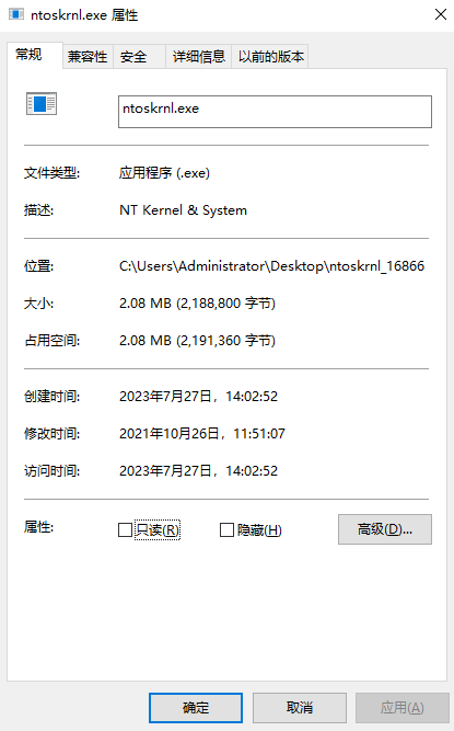 进程文件: ntoskrnl 或者 ntoskrnl.exe