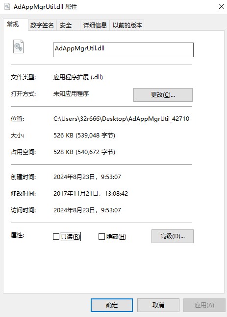 一、如果在运行某软件或编译程序时提示缺少、找不到AdAppMgrUtil.dll等类似提示,您可将从本站下载来的AdAppMgrUtil.dll拷贝到指定目录即可(一般是system系统目录或放到软件同级目录里面),或者重新添加文件引用。